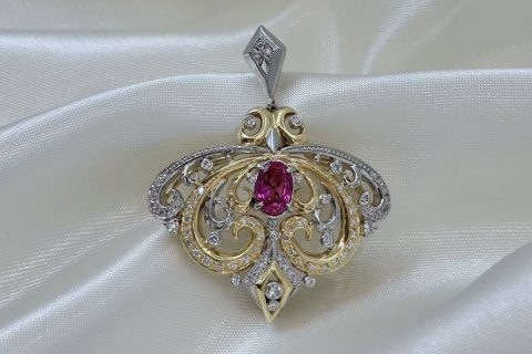 2026/04/02 買取商品 2026/04/14 材質:K18/K14/PT900(18金/14金/プラチナ900) 重量:11.1g サファイア:1.28ct ダイヤモンド:0.53ct ブローチ兼ペンダント 価格:438,000円